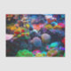Features a large variety of beautiful coral reef life . Done in many brilliant colours of the reef of red, green, blue, turquoise, red, purple and yellow.