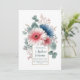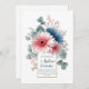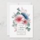 Announce your special day with this masterpiece of modern botanical art, radiating with a chic and joyful elegance that is perfect for a contemporary celebration. At the heart of the design is a stunning, airy bouquet of watercolor gerbera daisies, a symbol of pure happiness and new beginnings. The arrangement features large, show-stopping daisies in a sophisticated and trendy colour palette of vibrant coral pink and elegant dusty blue, each with intricate, detailed centres. These larger blooms are beautifully interspersed with delicate sprigs of pink baby's breath, adding pops of joyful colour and a touch of whimsy. Woven throughout this stunning floral display is an abundance of soft, dusty sage-green eucalyptus leaves, creating a fresh, organic contrast. While this invitation is the quintessential choice for a modern spring or summer wedding or a chic garden party, its versatile charm also makes it a stunning option for a sophisticated bridal shower, a joyful baby shower, or a stylish anniversary celebration. Announce your celebration with a design that speaks of modern romance, cheerful beauty, and unforgettable happiness.