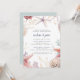 Elegant coastal rehearsal dinner invitation for summer or beachside celebrations features your ceremony rehearsal and dinner or party details in navy blue and grey lettering, framed by a watercolor border of pastel watercolor sea coral, shells and starfish.