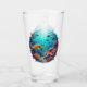 A vignette of a tropical coral reef, with a sea turtle, an ocgtopus, fish, and corals makes the perfect drinking glass for the beach house, or for anyone who loves nature, marine life and the sea.
