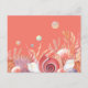 Enclosure card with beachy watercolor coral on a sunset orange background.
