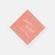 Coral wedding reception (bridal shower, rehearsal dinner, etc.) paper napkins with silver glitter and white text. Personalise with the couple's names, wedding date and location.