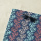 Ocean inspired beach towel with zigzag stripes of coral in aqua blue, dusty rose, and taupe, on a navy blue background.