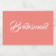 Self-adhesive labels for your wedding mini-sparkling wine bottles that feature a trendy coral colour along with "Bridesmaid" printed in white, stylised script. A great idea for when gifting your bridesmaids, as well as planning for a bachelorette party!