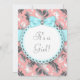 Coral Teal Blue and Grey Baby Girl Shower Invitation