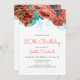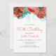 Coral Teal Blue Floral 80th Birthday Party Invitation