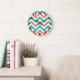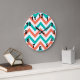 Coral, Teal, White Large Chevron ZigZag Pattern Clock