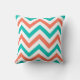 Coral, Teal, White Large Chevron ZigZag Pattern Cushion