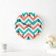 Coral, Teal, White Large Chevron ZigZag Pattern Large Clock