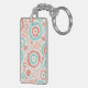 Coral & Turquoise Doodle ZigZag Circles Abstract Key Ring