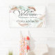 Welcome your wedding guests with this breezy eucalyptus foliage in aqua teal and copper coral wedding banner. Features a spray of watercolor eucalyptus leaves in shades of pale aqua teal and copper coral, "welcome" written in modern calligraphy - Bride and Groom's names and wedding date. Design created for TheBarefootBride™ by © WhimsicalArtwork™. This is part of a wedding stationery suite collection with matching wedding accessories also baby shower and other occasion stationery. Feel free to contact us if you need help.
