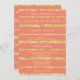 Coral wedding invitations with gold foil effect stripes and custom text, when couple host with their families