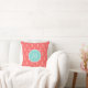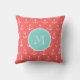 Coral White Anchors Pattern, Mint Green Monogram Cushion