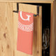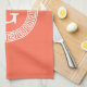 Coral White Greek Key Rnd Frame Initial Monogram Tea Towel
