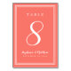 A template for any number this simple, minimalist and elegant Wedding Table Number design features a contemporary design with a double frame border in crisp white on a CORAL background. Chic design provides timeless yet modern sophistication. Personalise wedding table design with your name, wedding date and table number in trendy white lettering and script. The back of the card is a duplicate of the front. Easily customise and order one for every table with the individual table numbers.