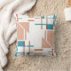 Featured is an abstract, geometric design in shapes and lines of light coral orange with aqua blue and rust and taupe elements, arranged in a perpendicular pattern, all on a white background, which projects a contemporary look in the spirit of the Mid-century Modern style. This is a clean, minimalist look in the simple lines and contrasting colours, projecting a colourful, polished, and stylish quality for living area, bedroom, workspace, terrace, or patio decor. This also offers a feeling of warmth, a relaxed and peaceful ambience for your personal home space, a place for retreat and contemplation while away from the busy everyday world. There is much decorative potential in this accent piece, which fits in with a numerous styles, from retro/vintage to rustic ranch to modern urban loft or high rise.