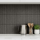 This ceramic tile design showcases a sophisticated striated texture with fine linear markings reminiscent of hand-finished plaster, brushed concrete, or weathered stone. The elegant neutral, dark espresso tone enhances the tile’s contemporary appeal while remaining highly versatile for a variety of interior styles including modern, industrial, minimalist, and Japandi-inspired spaces. Perfect for backsplashes, fireplace surrounds, feature walls, and decorative tile installations, the vertical pattern can visually elongate a surface while adding understated depth and texture. Search ID1286 to see other products in this unique design set.