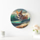 Corgi Beach Surfing Painting Large Clock