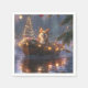 Set sail into the magic of the holiday season with this beautifully detailed illustration, showcasing a proud dog sitting in a festively decorated boat, gliding across a serene Christmas lake. The twinkling lights from nearby pine trees reflect off the water, casting a warm, festive glow that enhances the cosy ambiance. Ornaments dangle from the boat's sides, while glowing lanterns light the way, creating a scene that captures the true essence of Christmas warmth and joy. This nostalgic artwork brings a touch of holiday magic to any space, perfect for those who cherish the spirit of the season.