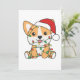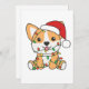 The corgi at Christmas with fairy lights. Funny animals with gifts and snow for the holidays. A sweet Christmas greeting. Dogs are cute animals and perfect for Christmas.