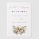 Vellum paper save the date template with Corgi dog design. Wildflowers and puppy image at the bottom of transparent paper. Customise for your event using five lines text in script and printed fonts in dark periwinkle blue. Easily change the text colour in the design tool, or ask me for help.