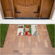 Corgi Dog sitting outside decorated home with Christmas wreath, Christmas tree is a perfect Christmas gift idea for dog lovers.