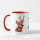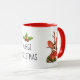 An adorable corgi bundled up in a Christmas sweater and antlers.