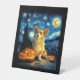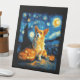 Corgi Dog Lovers Painting of van gogh starry night Pedestal Sign