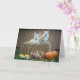 Two corgis on a bale of straw with fall pumpkins is a great way to say hello or Happy Fall/Halloween. Good for thank you, get well or encouragement.