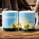 Make your mornings brighter with this personalised mug featuring a delightful pack of Corgis in a radiant art style, created in sunny blues and vibrant yellows. Not only does this mug capture the sheer joy of these charming companions, but it also offers a personal touch. Add your name, or even customise it with your own Corgi's name! Embrace each sip as you bask in the joyful energy of this personalised design, and every cup of your favourite beverage an experience filled with the clever friendly charm of the undeniably adorable corgi.
