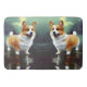 Corgi on water bath mat