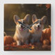 Corgi Puppy Autumn Delight Pumpkin Square Wall Clock