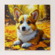 Corgi Puppy Dog Playing in Fall Leaves Jigsaw Puzzle