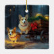Corgi Snowy Sleigh Christmas Decor Ceramic Ornament