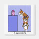 These three little cartoon corgis are using their heads - and shoulders, and arms! They're standing on each other to form a ladder to reach the doggie treat jar left on the counter. Funny and inspirational design for animal lovers. Original Pembroke Welsh Corgi magnet.