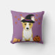 Whimsical and Fun Pembroke Welsh Corgi dog dressed up as a witch for Halloween Decorative Throw Pillow