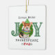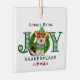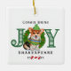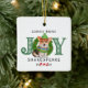 This ornament features a cute Corgi in front of a wreath. The Corgi is a watercolor design and will often have a softer focus, like a watercolor painting when printed. The wreath makes up the letter “O” in joy. Above the Corgi, it reads, “Corgis Bring.” The complete message on the ornament reads, “Corgis Bring Joy.” You personalise the ornament with your dog’s name. Under your dog’s name, there is a candy-striped bone and the year 2024. The candy-striped dog bone appears again on the back of the ornament at the lower portion of the ornament. You can type a sweet note to your fur baby on the back if you desire.