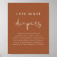 This late night diapers baby shower game template features an edgy handwritten font and a modern minimalist design with a boho terracotta and white colour combination. Use these templates to edit font colour, and the background colour to match your event style. Its simple design is the perfect baby shower sign for the modern mum.