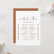 This bridal shower game features an edgy handwritten font and modern minimalist design with a boho terracotta, rust, and white colour combination. Easily edit all colours to meet the needs of your event. Some text is editable - click the blue 'edit using design tool' button in the personalisation section.