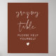 This grazing table sign features a an edgy handwritten font and modern minimalist design with a terracotta and rust colour combination. Use this poster for your wedding reception, bridal shower, retirement party, etc. Edit *most* wording to meet your needs.