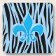 Light blue and black zebra print stripe pattern with a blue fleur de lis (fleur-de-lis) in the centre. Trendy fleur de lys (fleur-de-lys) graphic for girls that like French inspired gifts or women that love chic animal print patterns.