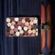 A photograph of my wine cork collection set on their ends. Some are stained from the wine, others are not.