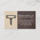 Corkscrew Icon | Brown Texture Leather Background Business Card