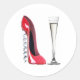 Corkscrew Stiletto Shoe and Champagne Flute Glass Classic Round Sticker
