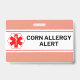Corn Allergy Alert Emergency Card ID Badge