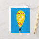 Colourful yellow corndog over a blue painted background with flower and striped details.