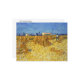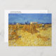 A fine art postcard with the post-impressionist painting by the Dutch artist Vincent van Gogh (1853-1890), Corn Harvest in Provence (1888), A landscape of a field in France after the Autumn harvest with a brilliant blue sky.