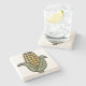 The coasters are gorgeous, a quality feel and heavy weight. They look like a precious archeological find. A rustic stone juxtaposed with a modern floral black and white print. I like the way the print goes slightly imperfect on the cut stone edges giving them a kind-of natural beauty.
