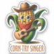 Corn-try Singer Funny Corn Pun Sticker. Funny chibi corn playing guitar food saying sticker.