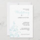 White wedding invitation with delicate light blue floral design in bottom corner of card. Colours and text are completely customisable online with a few clicks but if you need help customising colour or editing the text contact designer at ArtByLiz@gmx.com and card will be customised for you at no extra charge.
